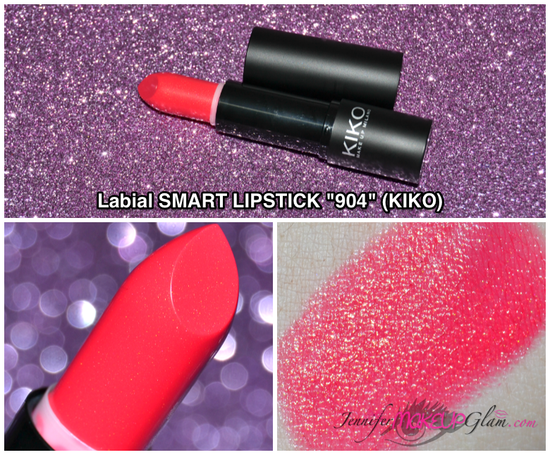 - Labial SMART LIPSTICK "904" (KIKO) - Labial en tono coral rojizo rosado con alguna pequeña chispita dorada.Perfecto para el verano.Es muy cremoso y deja un acabado "mojado" en los labios.